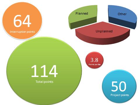 Once again the team completed over 100 points in the sprint, and once again we committed to doing 50 project points (the other 50-or-so being unplanned interruptions).